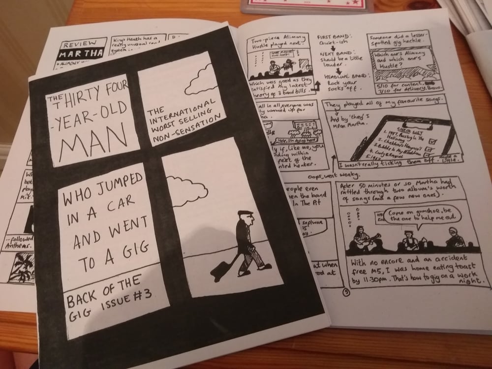 Back Of The Gig #3 is mostly music reviews, but in the loosest sense of the term. I spend more time talking about traffic than I do about bands. So if you would like to hear about how busy the M5 is on a Friday night, then this zine is for you!